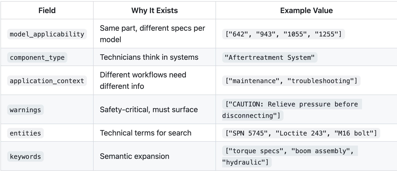 None of these decisions came from a “RAG best practices” blog post. They came from understanding how technicians actually use service manuals, flipping between pages, tracing figure references, comparing specifications across models.