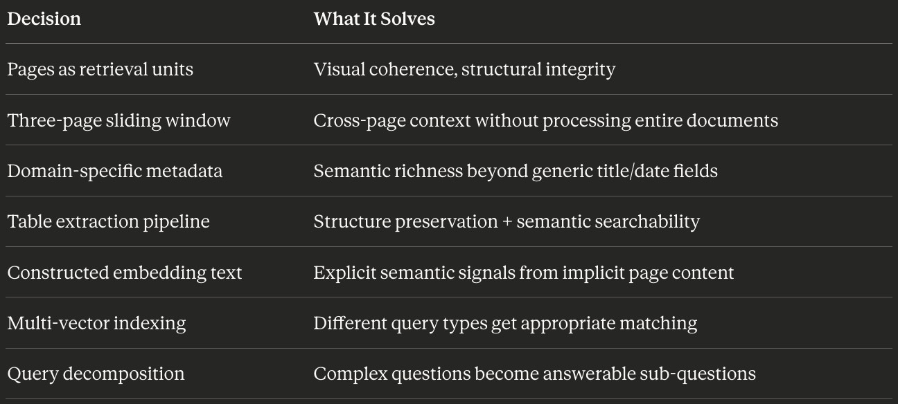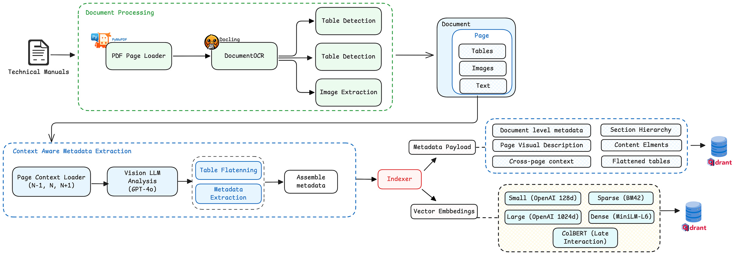 This entire article, all seven decisions, covers only the ingestion and indexing pipeline. We’ve taken raw PDFs and transformed them into a richly structured, multi-vector indexed collection in Qdrant.