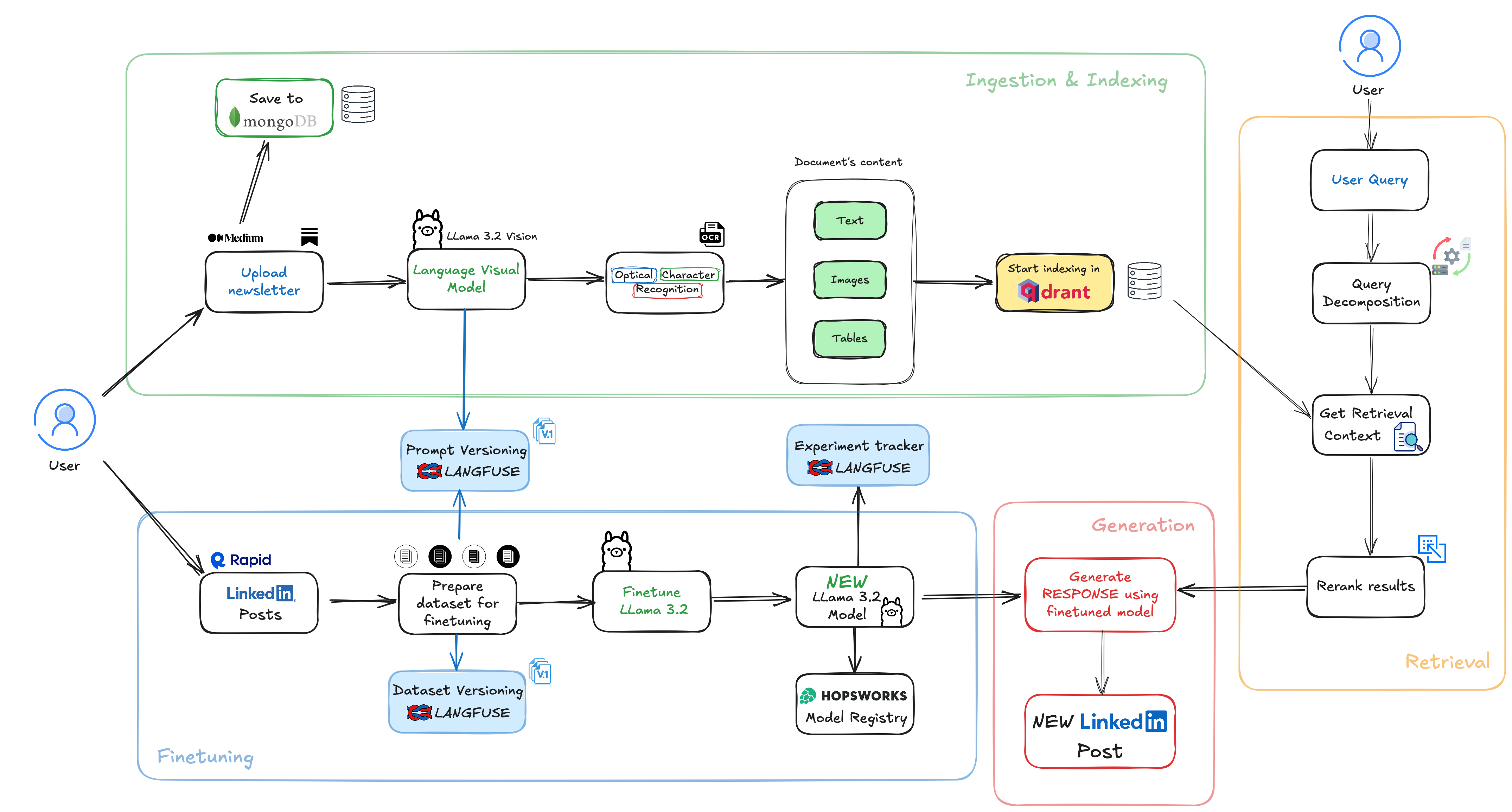 In the next lessons, we will go step by step through the development of our LinkedIn post generator, focusing on the three key stages of the system: